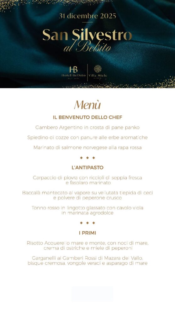 I nostri Menu per il Cenone di San Silvestro e per il pranzo del 1 Gennaio